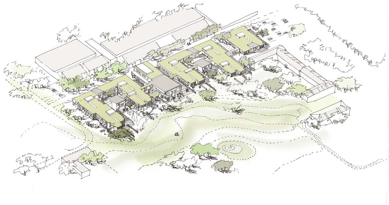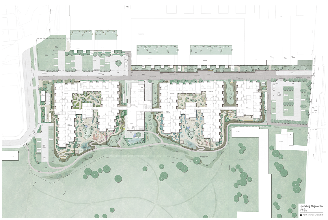 Placeret lige mellem Hyrdehøj gravhøj mod syd og det store Hyrdehøjs-indkøbscenter mod nord vil Hyrdehøj Plejecenter medvirke til at skabe et nyt lokalt centrum i området.